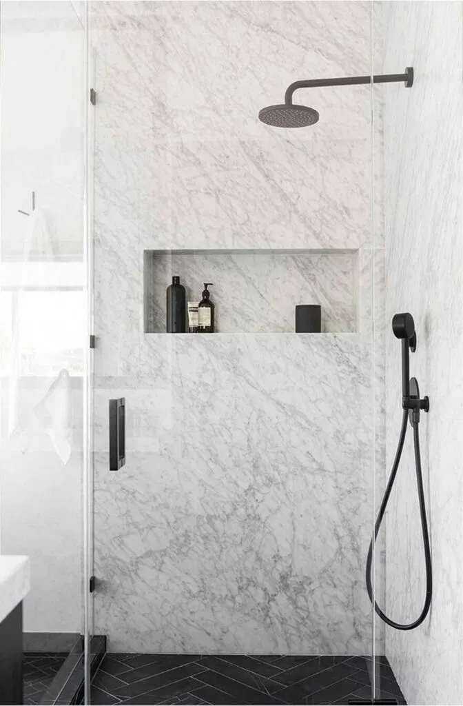 Niche: An area that is recessed into a wall to allow for storage (ie: a shower niche)