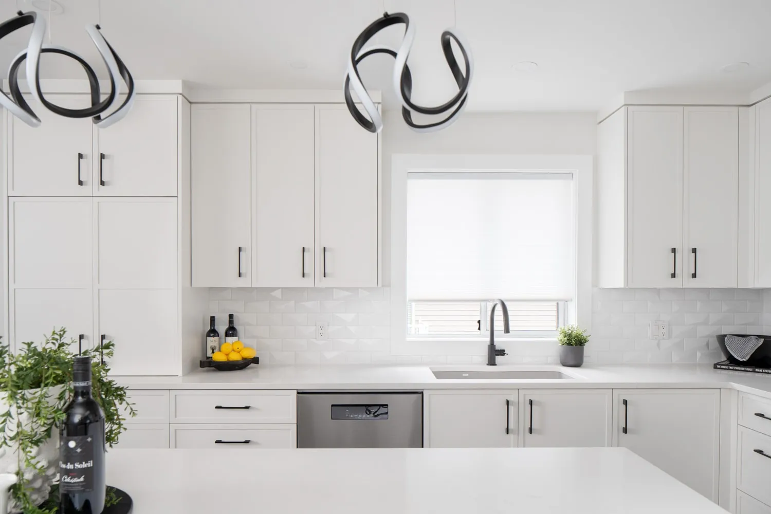 - 1” Shaker profile cabinets painted in Benjamin Moore Decorator’s White