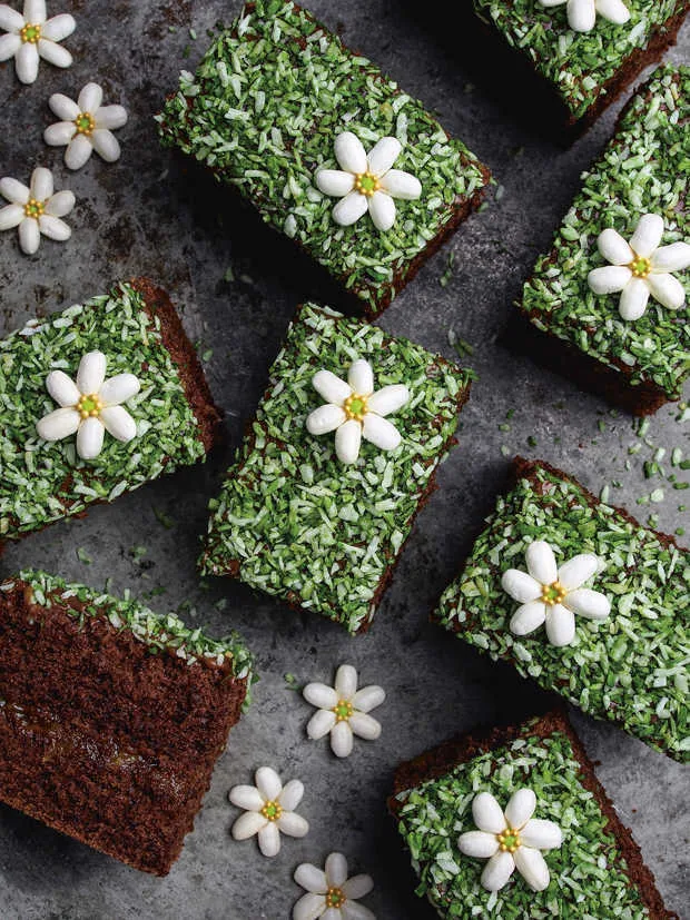 Does your keen tween baker love watching baking competitions? Challenge them to make this Apricot Coconut chocolate cake, covered in green coconut ‘grass’, for your guests arriving in two hours. Start the clock!