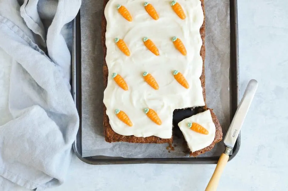 Here are a couple of Eastery-looking treats that caught our eye. Carrot cake is classic, AND this one boasts orange cream cheese with adorable carrots made from marzipan. Fondant would work here too.