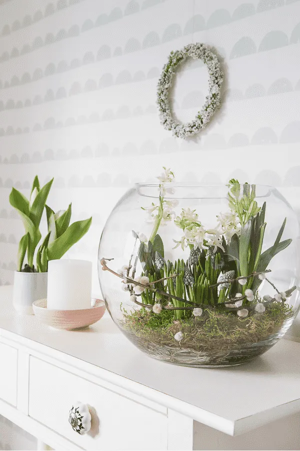 If it’s raining cats and dogs, garden indoors. Make a terrarium with grape hyacinth or planter full of primulas as a gift for Grandma.