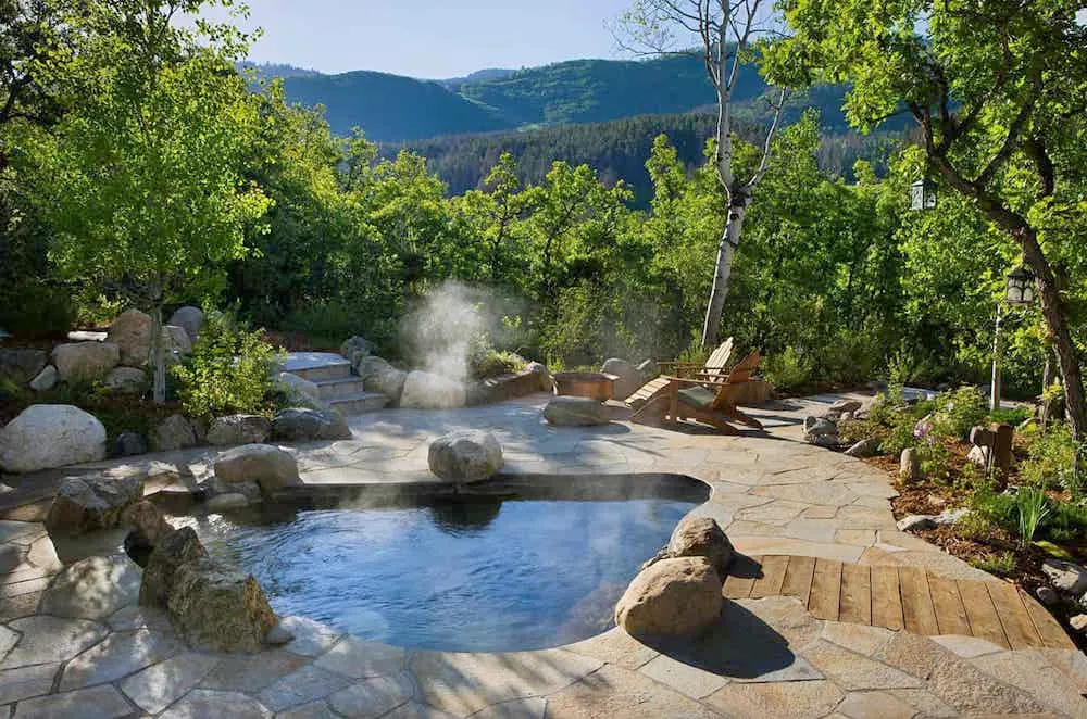 If you haven’t done the legwork already, you might think all hot tubs are squarish units that you park on top of a deck (like above). We’re here to show you a wider world of outdoor hot tub possibilities!
