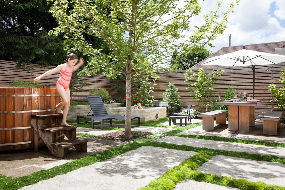 We can’t imagine anything better than melting the day’s stress away in a soothing outdoor tub with a favourite beverage, and no one calling your name. Hot tubs are also fairly easy to add to most exterior spaces. Even if you have no yard, one of the beauties of a hot tub is that it fits into places that swimming pools definitely do not.