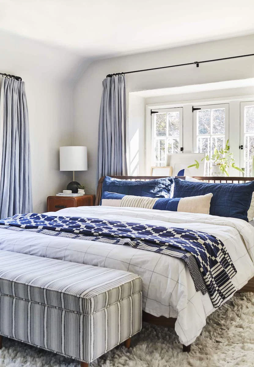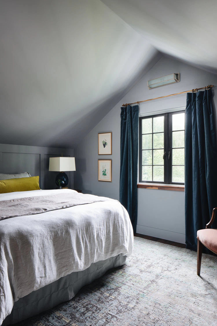 You didn’t hear it here first—a fresh coat of paint on the walls can truly transform a room. Even if it’s white, it’s guaranteed to brighten up your space and make it feel new again. If you’re craving more colour after years of white and greige, try a muted version of a hue that’s already in the decor. In Jean Stoffer’s design above, soft grey-blue walls paired with deep blue velvet curtains make this bedroom feel extra cozy.
