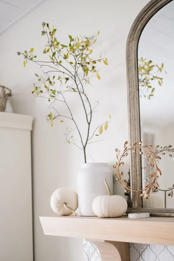 You might prefer softer greens like moss and sage with greys; or deep purples like aubergine and plum with dark green. If you’re struggling to mesh fall decor with your current space, just stick with the basics like simple greenery or neutral grasses, which will help elevate any space..