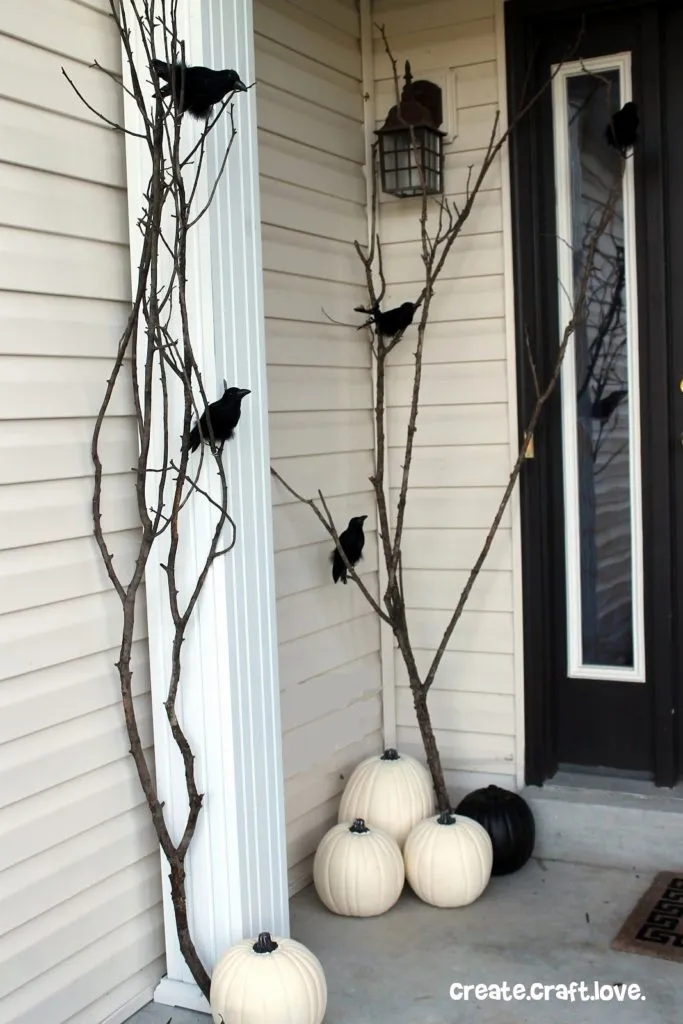 These spooky, yet elegant looking branches turn into a modern Halloween decorating idea for your doorstep. A perfect place for ravens and bats alike to reside. Simple and spooky at the same time.