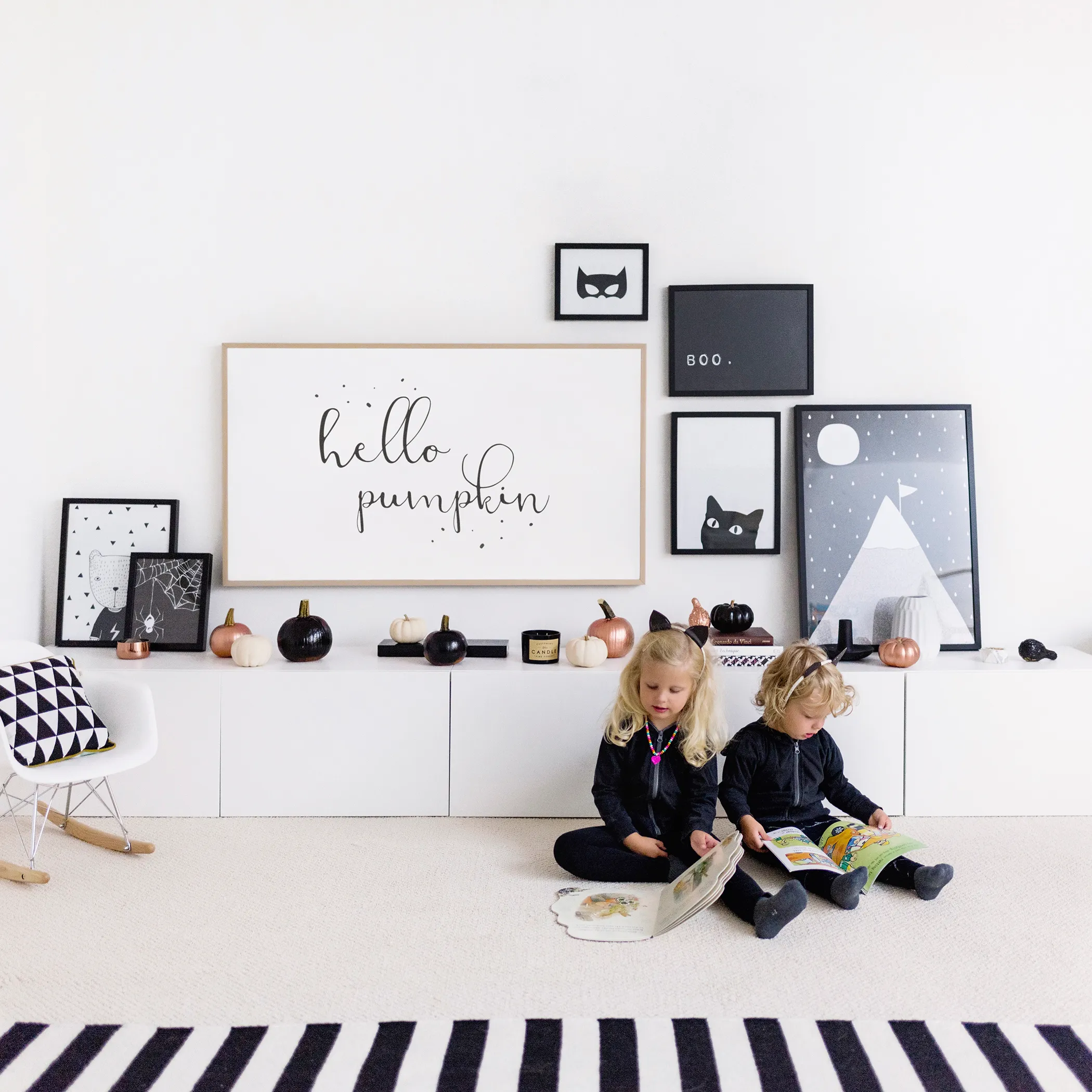 Sometimes its just as simple as sticking with these 2 common shades. Spruce up your mantle with simple black and white frames and painted mini pumpkins to welcome the spooky season.