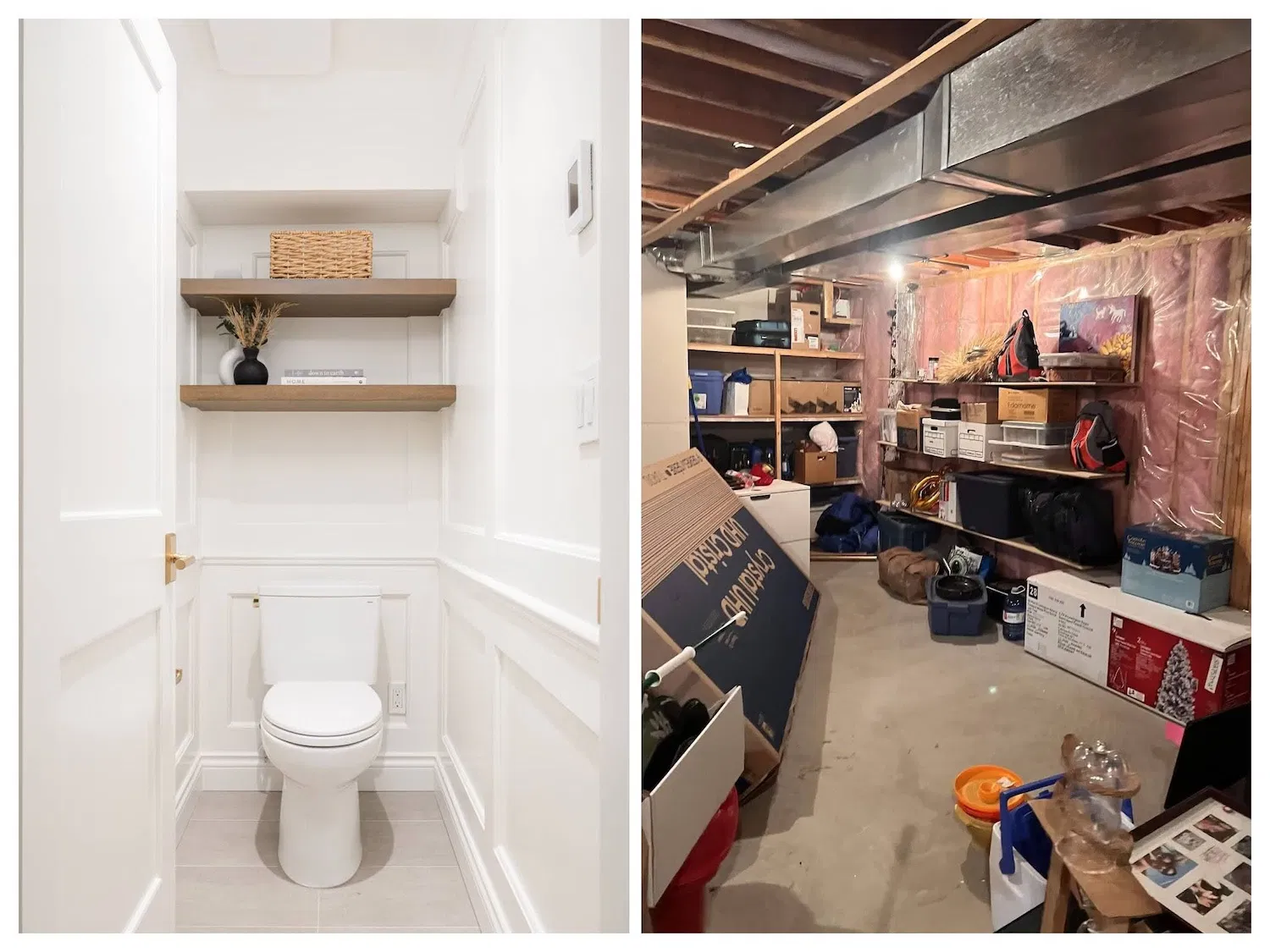 Despite limited natural light and mechanical constraints, the finished space feels warm, elevated, and genuinely restorative.