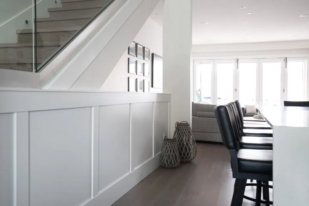 In the kitchen area, we created another accent wall by adding a wainscotting detail that brings interest and a unique touch to the space.