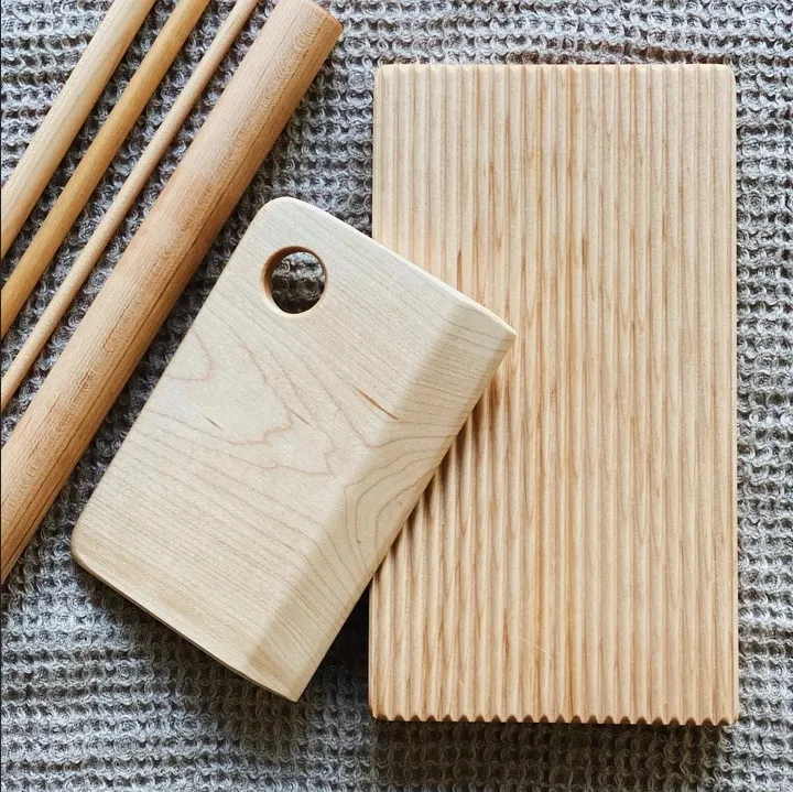All kinds of handmade pasta can be made with this deluxe 6-piece Pasta Board Set, made from beech wood and packaged in a linen bag for gifting. Hours of pandemic entertainment for adults! Group it with a bag of Durum Semolina flour or a pasta maker.