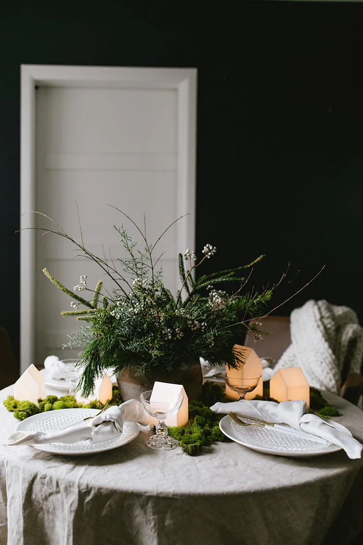 Add a personal touch by incorporating place cards, a message or a menu. It doesn’t need to be complicated—even a small white card tucked on top of the napkin or in a pinecone looks lovely. Choose a modern design that complements your overall theme.