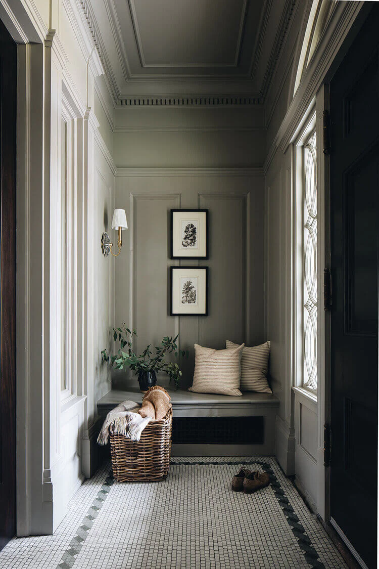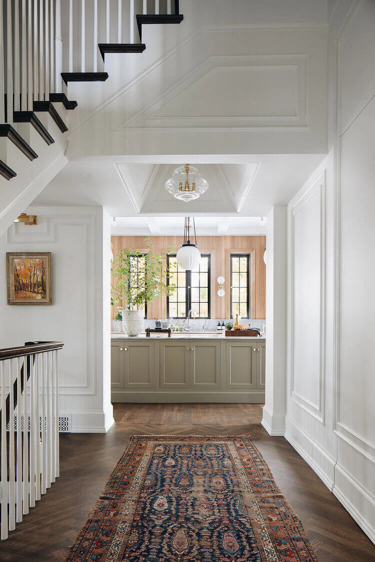 There’s plenty of room for creativity with wall molding: paint it in a contrast color, double it up, or set it into different shapes to highlight architectural aspects or fixtures in the room (see the hallway above).